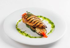 Стейк из курицы в имбирном маринаде на подушке из цукини