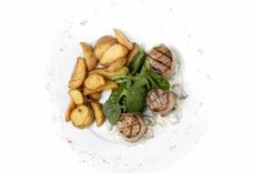 Медальоны из свинины под сливочно-грибным соусом с картофелем