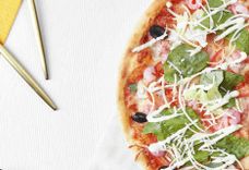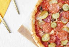 500 г • пицца с сыром моцарелла, шампиньонами, ветчиной, салями, беконом, маринованным огурцом и розмариновым маслом