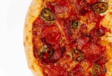 700 г • пицца с сыром моцарелла, колбасой пепперони, лечо, кайенским перцем и розмариновым маслом