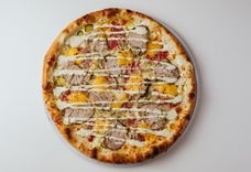500 г • пицца с моцареллой,куриным филе, ветчиной, перцем, горчичным соусом